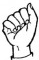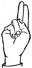 На ћирилици написано ПЕРИША ПУЧИЋ састоји се из 11 слова [?]. Исписано ћириличном једноручном азбуком за глувонеме: